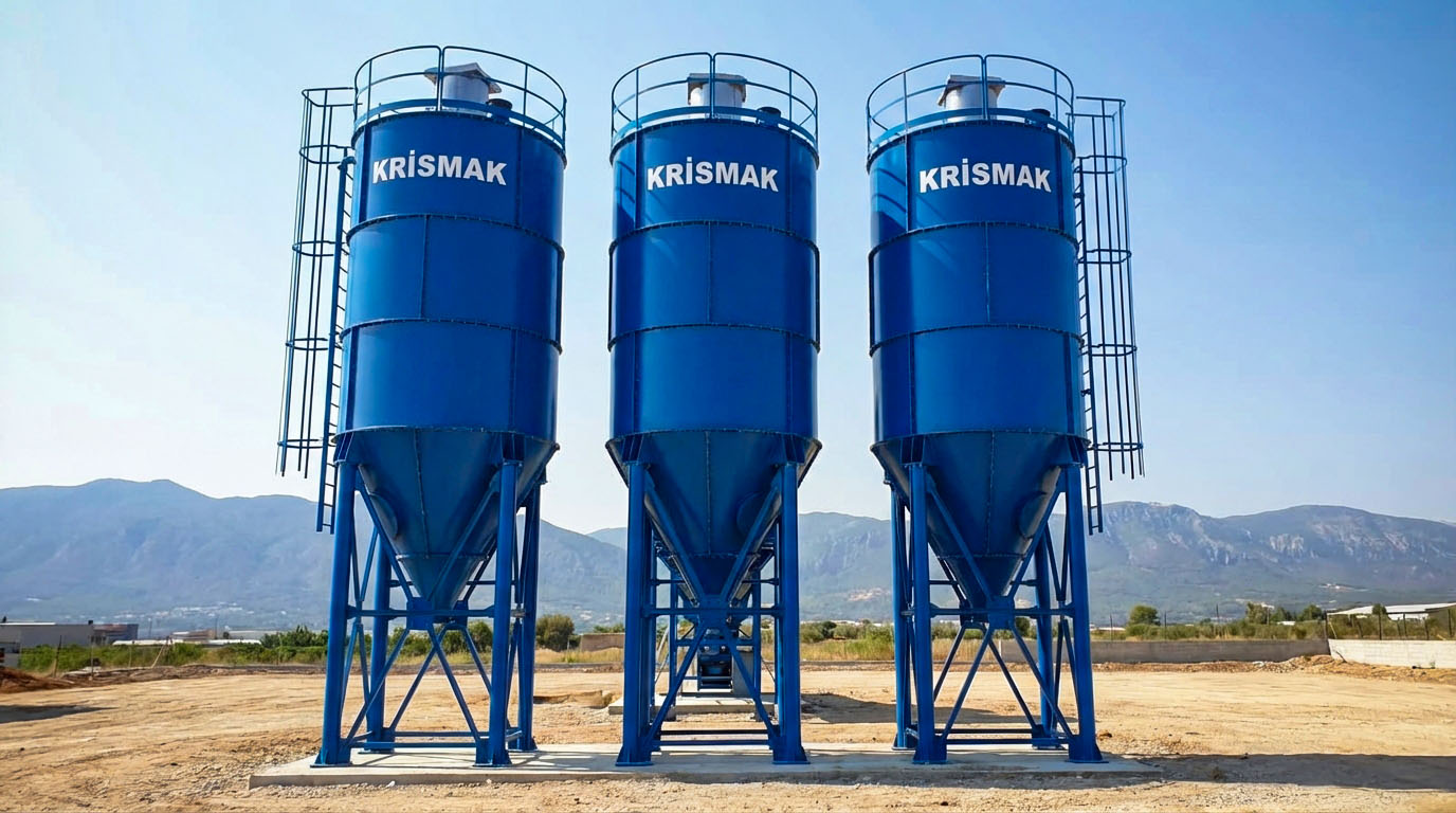 KRİSMAK olarak geliştirdiğimiz KS-50 çimento silosu; yüksek kapasite, dayanıklı yapı, kullanım kolaylığı ve yazılım destekli mühendislik altyapısıyla beton üretimi ekosisteminin ihtiyaç duyduğu depolama standartlarını eksiksiz karşılamaktadır. Projenizin ölçeğine ve teknik gereksinimlerine göre yapılandırılabilen bu çözümle, çimento depolama süreçlerinizi güvenli, verimli ve sürdürülebilir bir temele oturtmanız mümkündür.