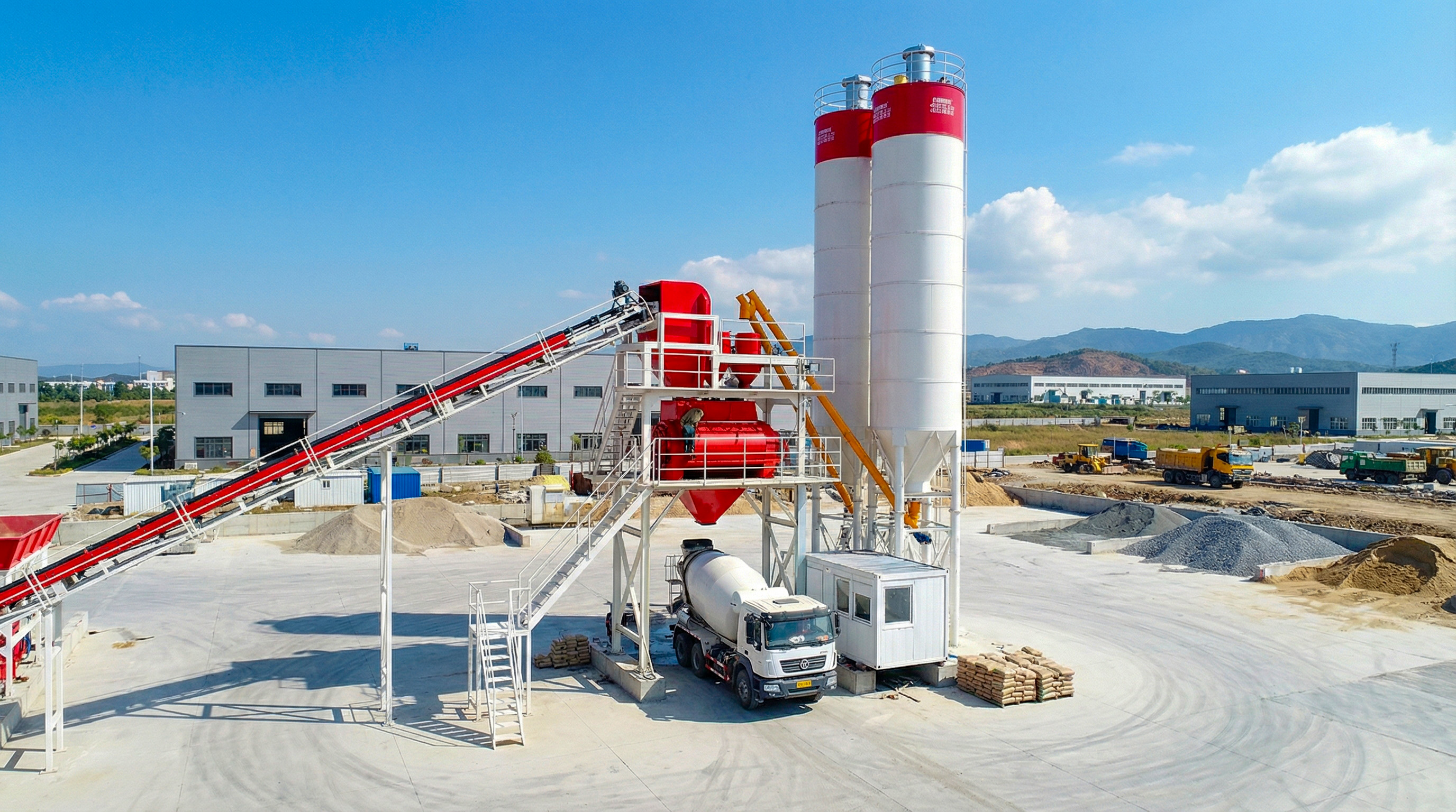 Çimento depolama kapasitesi açısından SABİT 90, projenin boyutuna ve lojistik koşullarına göre ölçeklendirilebilen bir altyapı sunmaktadır. Sistem, 75 ile 500 ton arasında değişen kapasitelerde çimento silolarıyla donatılabilmekte; çimentonun torba halinde tedarik edildiği durumlarda ise büyük torba açma ve otomatik silo doldurma sistemleri devreye alınarak malzeme aktarım süreci hızlı ve güvenli biçimde yönetilmektedir.